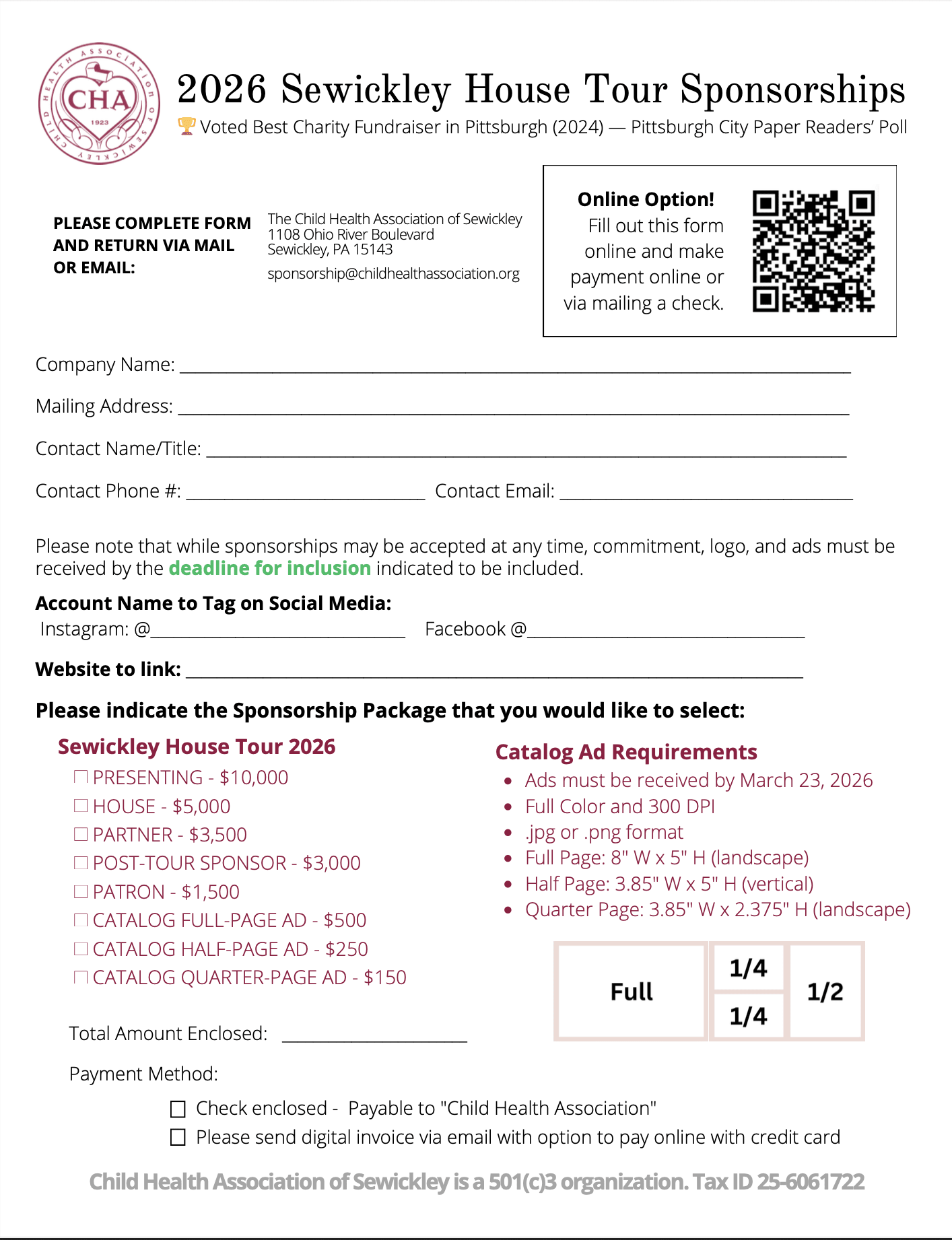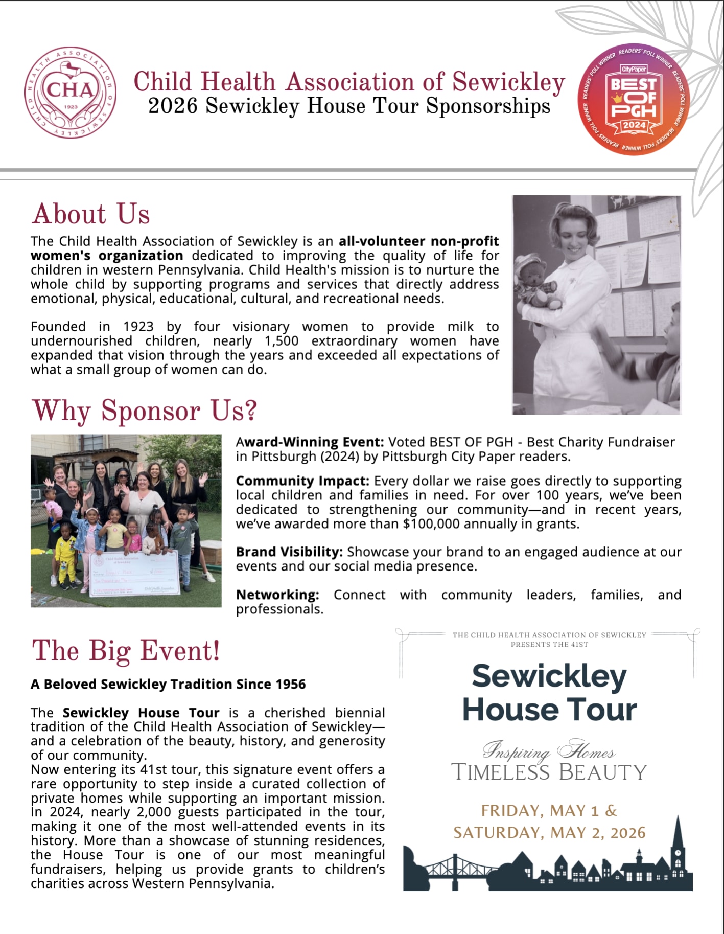 2026 Sewickley House Tour Sponsorships - Support Children. Strengthen Our Community. Promote your Business